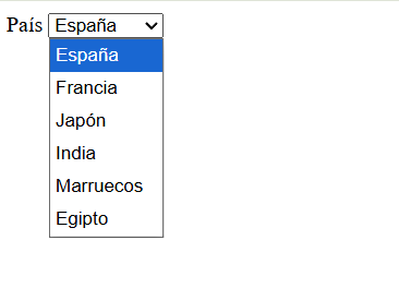 En este selector hay opciones que pertenecen a categorías (por ejemplo, continentes), pero en el código no se expresa esa relación de forma programática.
