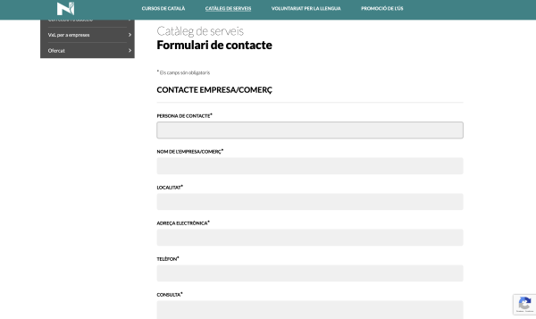 Cada camp té una etiqueta visible clara (ex: "Nombre *", "Correo electrónico *", "Tema de la consulta *").