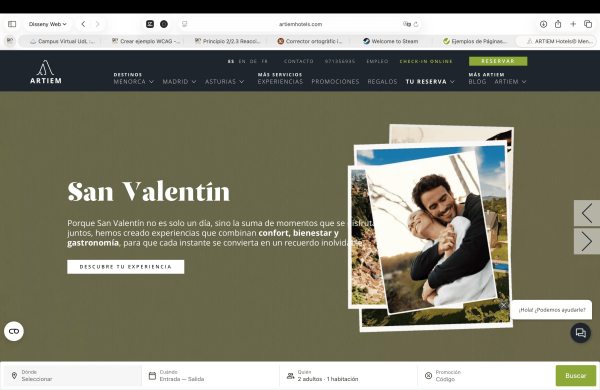 En aquesta web apareix un carrusel d'imatges/contingut a la pàgina principal que va canviant en un període bastant més llarg de 3 segons, la qual cosa no pot causar molèsties visuals, ja que és una transició lenta.