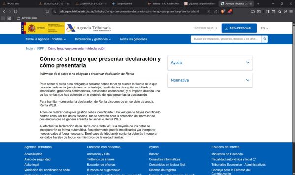 En la sección "Cómo tengo que presentar declaración y cómo presentarla" vemos un texto con las instrucciones para llevar a cabo la declaración de la renta, pero no se ve ninguna facilidad para poder navegar entre secciones y/o paginas alternativas.