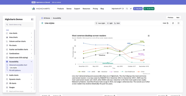 https://www.highcharts.com/demo/highcharts/accessible-line