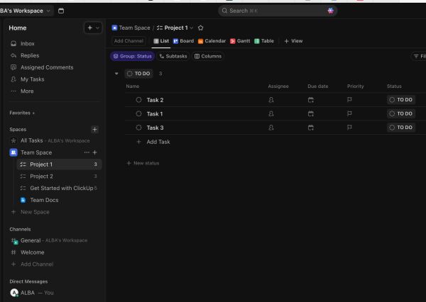 En la web de ClickUp tienes que mantener el puntero (clic o toque) y moverlo con precisión para arrastrar la tarea a la posición que quieres. Esto requiere bastante control de los movimientos finos y sostenidos.